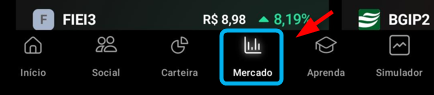 O menu "Mercado" do aplicativo HUB3 disponibiliza informações sobre ranking e cotação dos ativos, calendário econômico e notícias referentes ao mercado financeiro nacional e internacional.
